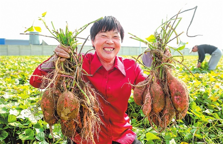 11月3日,尉氏县大桥乡大槐树村村民正在采收红薯。近年来,该村通过“党支部+合作社+农户”模式,以红薯粉条加工为依托,成功打造“大槐树粉条”品牌,在传承传统手艺的同时提升农产品附加值,让红薯成为助农增收的“金疙瘩”。